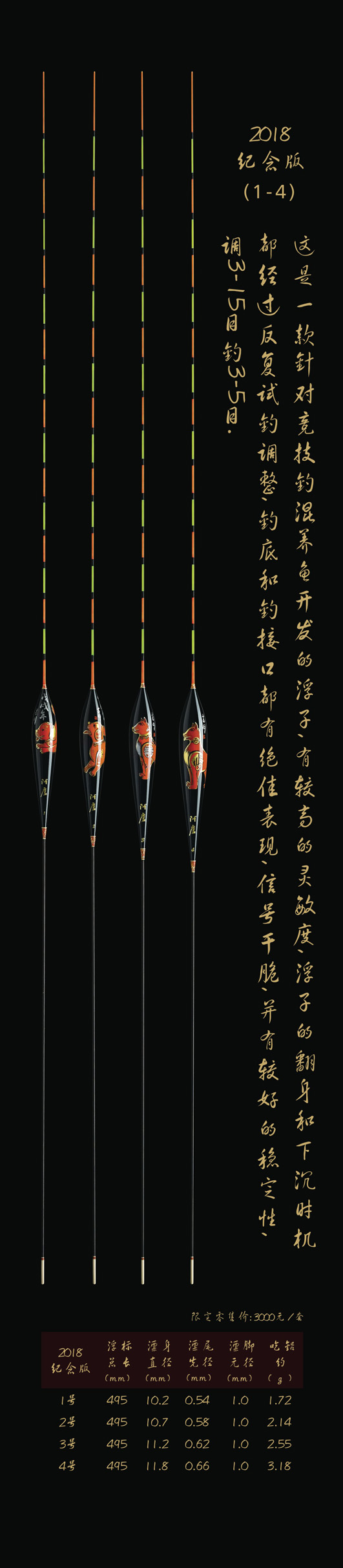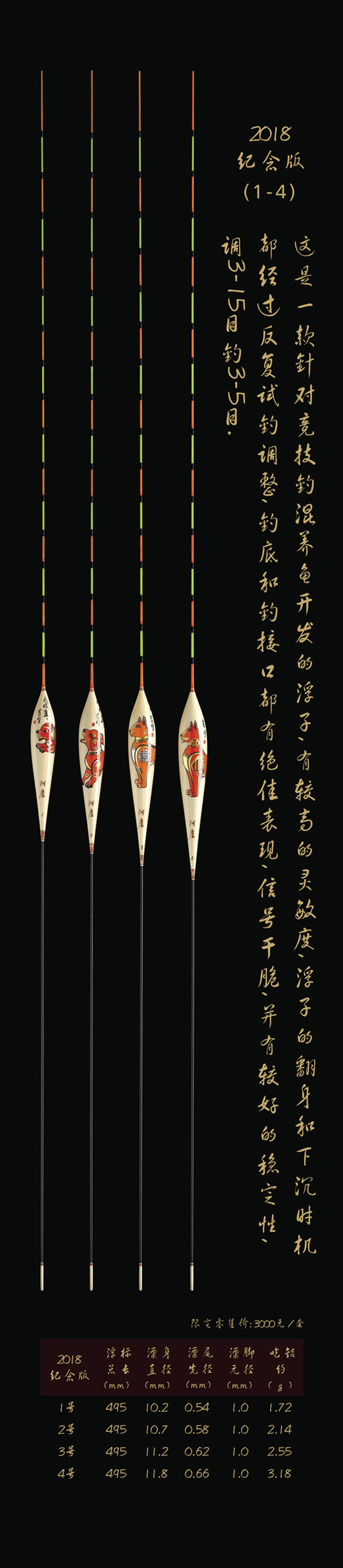 深圳市一良致釣有限公司,2018戊戌(狗)年精心設(shè)計推出象征著運(yùn)旺時盛,福旺康泰的限量紀(jì)念版浮漂。